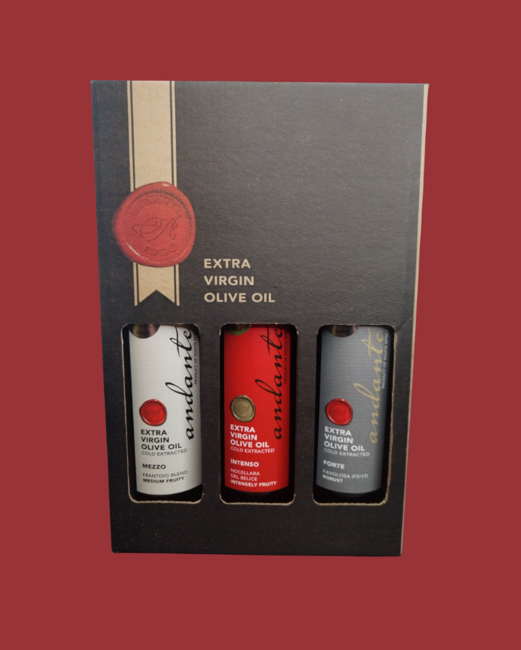 Delicately fruity, with gentle aromas and flavours, from Frantoio, Leccino and Mission harvested later in the season, with aromatic Kalamata notes.